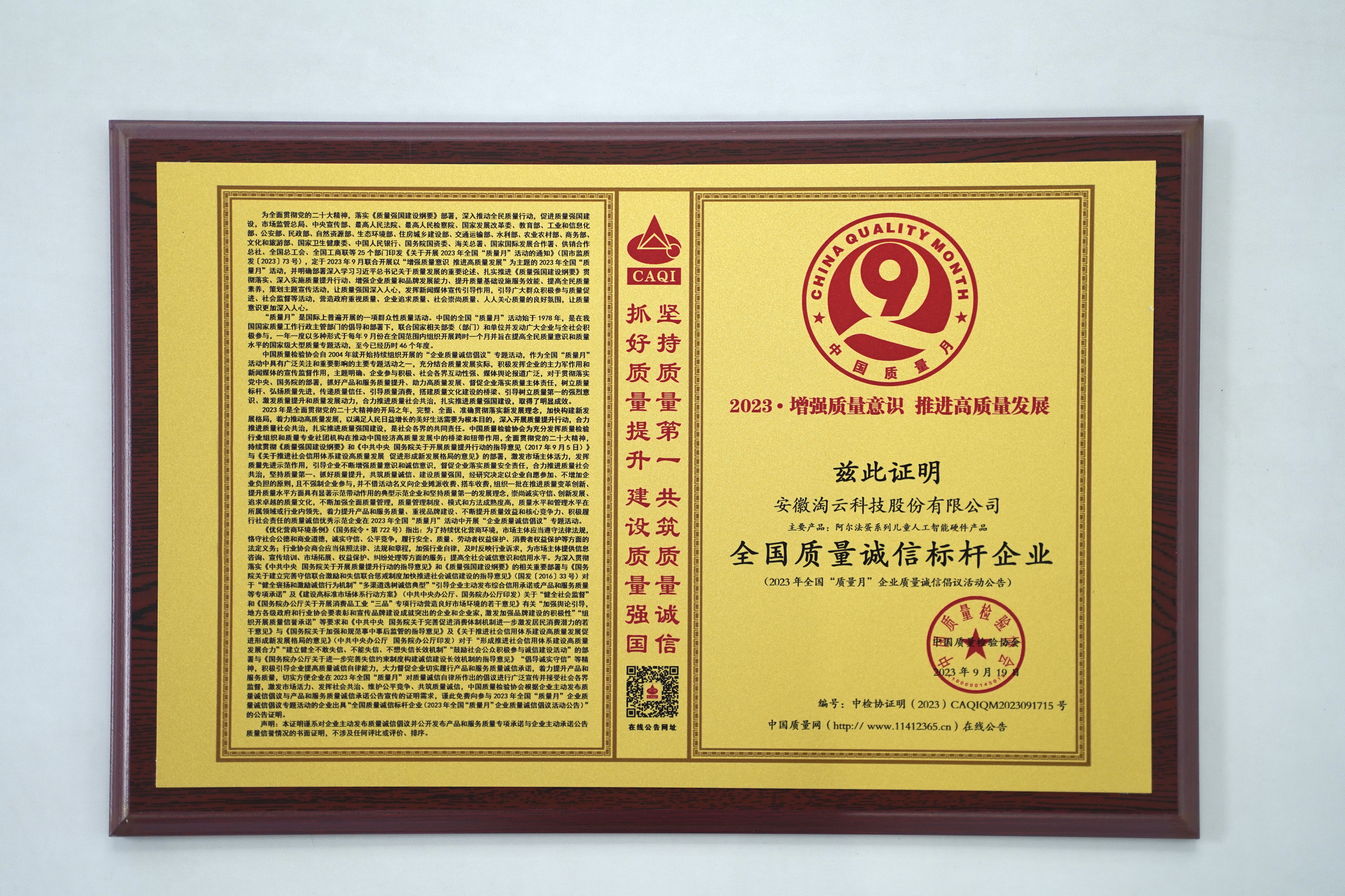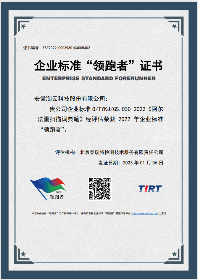 淘云科技荣获“全国学习机器人行业质量领先品牌”