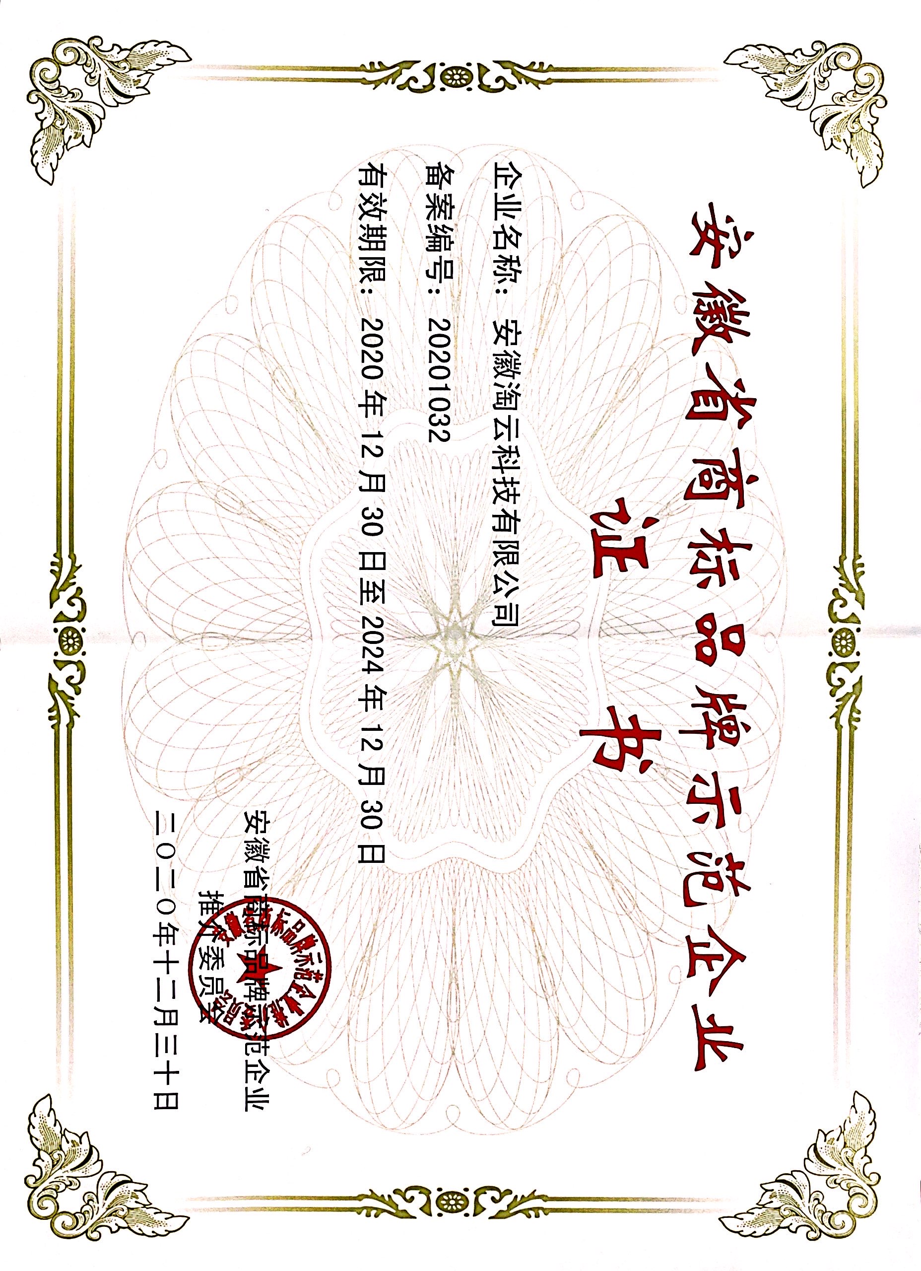 安徽省商标品牌示范企业